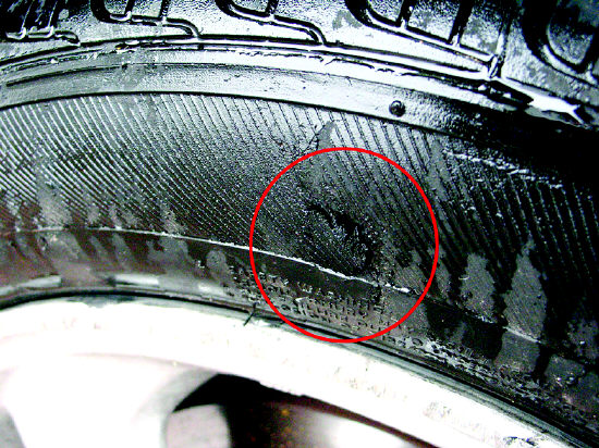 圖:輪胎側壁的傷口。朱人杰鞏合生小寧攝 |