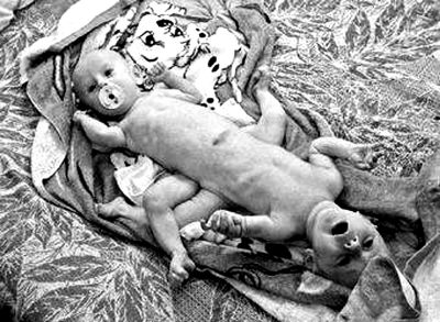 據俄羅斯《真理報》9月30日報道,俄羅斯西伯利亞地區哈卡西亞共和國一名女子3個月前產下了一對模樣古怪的連體女嬰,兩個嬰兒臀部平著相連,乍看起來就仿佛身體兩端各長著一個