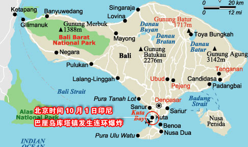據當地媒體報道,巴厘島當晚至少發生了3次爆炸,頭兩次爆炸發生在巴厘島金巴蘭區的一家餐館,第三次爆炸發生在庫塔鎮,兩處都是游人較為集中的地方。爆炸還造成多座建筑物損壞。
