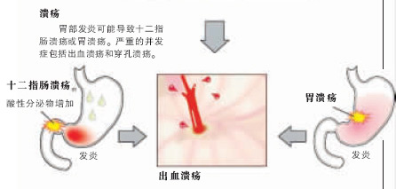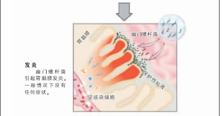 幽門螺桿菌引發(fā)胃潰瘍過程示意圖:發(fā)炎