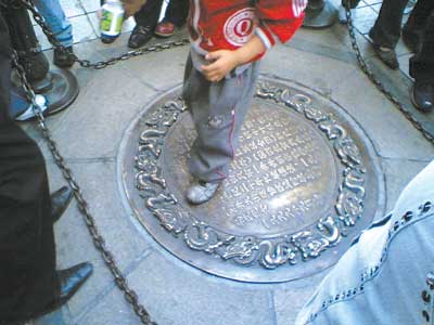 記載了王府井歷史的古井,是王府井的象征。為保護古井,它的四周用鐵鏈圈了起來。在“十一”期間,鐵鏈經受不住眾多游人的“愛撫”