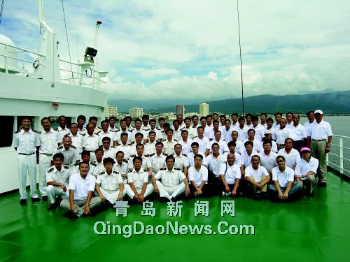 早報訊 當地時間10月4日,在牙買加首都金斯敦靠港地,“大洋一號”考察船全體船隊員合影留念(上圖) 。據“大洋一號”考察船船長陸會勝介紹,距離上次全體船隊員在夏威夷照“全家福”已經有3個多月了,船上的隊員也已經更換了33名,需要一張新的“全家福”留念;更主要的原因是上次照的“全家福”被媒體公布后,很多家屬都在網上和報紙上尋找自己親人的面孔,所以這次組織全體船隊員合影給所有家屬報個平安。(于小陽米明宇)