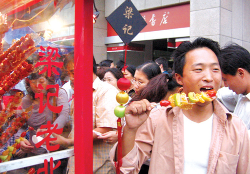 黃金周期間,各種地方風味小吃迷倒了各地游客(記者 李楠 實習生 崔奉霞 報道)