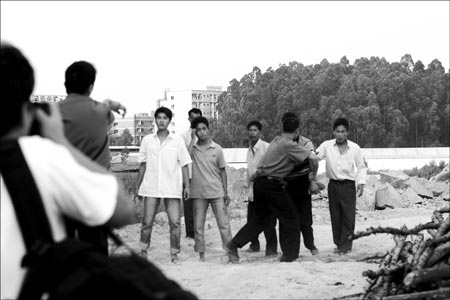 昨天下午5時(shí)30分,南方日?qǐng)?bào)一名文字記者和攝影記者獲準(zhǔn)進(jìn)入距離現(xiàn)場(chǎng)較近地點(diǎn)。攝影記者爬上一堵距離第一現(xiàn)場(chǎng)約50米的墻上拍攝,不料幾名穿T恤的男子拿著長(zhǎng)棒沖過(guò)來(lái),對(duì)著攝影記者大喊,“再拍就捅死你!”幾名警察趕到現(xiàn)場(chǎng)勸解,解除風(fēng)波。