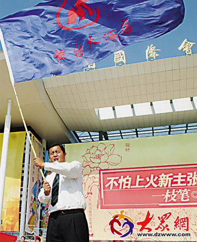 濟南國際會展中心門前成了商家必爭之地(郭建政 攝影報道)