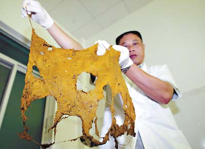 從萬女士腹中取出的紗布已開始腐爛,露出了幾個(gè)大窟窿。楊勤攝