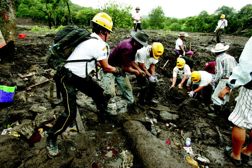 危地馬拉城以北180公里的圣地亞哥-阿蒂特蘭鎮日前同樣遭泥石流滅頂,至少208人遇難。據新華社供本報特稿