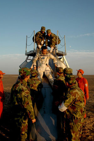據(jù)專家介紹,飛船的應(yīng)急救生系統(tǒng)主要是指飛船在上升段即在大氣層內(nèi)出現(xiàn)意外情況的救生。應(yīng)急救生系統(tǒng)分了幾個(gè)模式,布置了4個(gè)應(yīng)急著陸區(qū):東風(fēng)、榆林、銀川、海南。飛船載人飛行的時(shí)候,隨時(shí)都有可能出現(xiàn)意外情況,有的軌跡就不可能經(jīng)過主場(chǎng)或者副場(chǎng),可能會(huì)落在其他地方。針對(duì)這種情況,發(fā)射中心專門成立了一個(gè)空中應(yīng)急搜救隊(duì),由大型運(yùn)輸機(jī)把航天員運(yùn)輸車、工程車、小型指揮搜索車都裝在上面,保證以最快的速度把使用的工具運(yùn)到返回艙附近,爭(zhēng)取在最短的時(shí)間里救出宇航員。