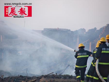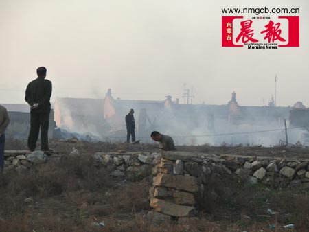 隨后記者采訪了正在現場組織指揮撲火和安置村民的呼和浩特市市委常委、土默特左旗旗委書記云忠義,云書記告訴記者,爆炸發生在早上,有1戶人家違章作業引起連環爆炸。發生爆炸那戶人家至少有1到2人死亡。
