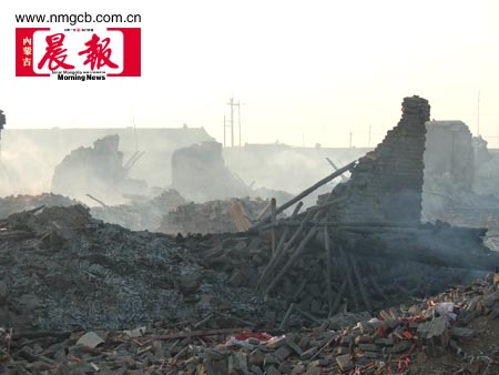 記者趕到現場時,看到朝號村上空濃煙滾滾,當地公安機關劃定了警戒范圍,不讓任何人進入。呼和浩特市委常委、土左旗旗委書記云忠義說:“因一戶人家違章作業引起連環爆炸,發生爆炸的那戶人家至少有1到2人死亡。目前送到醫院的傷者有5人,其他情況暫時不明,只有等到工作人員清理完現場才能知道具體情況。”據悉,朝號村是一個有1000多戶人家的大村,80%以上的人家都生產煙花爆竹。此次連環爆炸致使約50%的房屋受到損壞、倒塌。