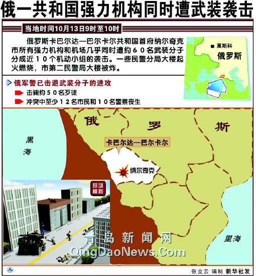 100多名武裝人員13日向俄羅斯南部卡巴爾達(dá)—巴爾卡爾共和國(guó)首府納爾奇克執(zhí)法機(jī)關(guān)發(fā)動(dòng)襲擊。俄安全部隊(duì)與他們發(fā)生激烈交火,打死50多名武裝人員。襲擊還造成至少12名平民和5名警官身亡、84人受傷。俄總統(tǒng)普京已下令封鎖全城,對(duì)武裝分子格殺勿論。這是繼去年9月俄北奧塞梯共和國(guó)別斯蘭市人質(zhì)事件以來(lái),卡巴爾達(dá)—巴爾卡爾共和國(guó)所在的北高加索地區(qū)發(fā)生的最嚴(yán)重襲擊事件。車臣非法武裝已宣稱負(fù)責(zé)。當(dāng)?shù)毓賳T認(rèn)為,襲擊是為解救最近落網(wǎng)的宗教極端組織成員。