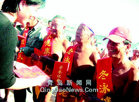 本報訊 11日,青島首批冬泳健康老人評出,市老領導武杰等13名老人當選。    據了解,這些健康老人,年齡最大的已經89歲,看上去普遍要比實際年 齡年輕10多歲,多數人因為堅持冬泳,常年不感冒、不打針、不吃藥。(崔燕)