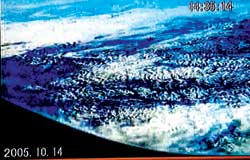 10月14日14時35分,神舟六號航天員傳回的畫面,畫面中展示的是從太空看到的中國大地。新華社發