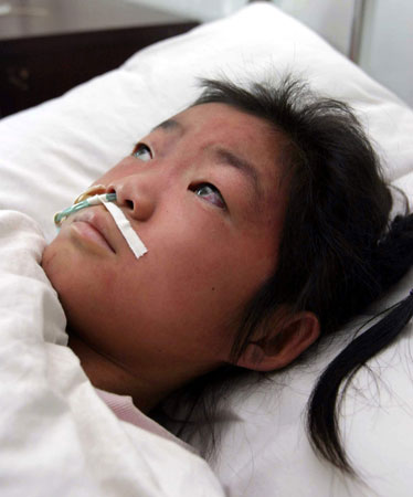 在普外科病房里,受傷最重的黃佳聲音依然很虛弱,眼睛腫得像紅玻璃珠,滿臉都是細小的紅點點(出血點),嘴唇蒼白,醫生說大概是被長時間擠壓時憋氣所致。黃媽媽說,女兒被送到醫院時,看上去似乎已經沒有生命,幾個小時后才蘇醒,又過了幾個小時,她才能夠開口簡單地說幾句話。壓在倒數第三個的陳家敏的媽媽王小芳告訴記者,她聽說孩子出事后,匆匆忙忙地往學校跑去,陳佳敏剛被救出來,站在人群中,全身發抖看到了媽媽,但仍直打哆嗦“好多人踩在我身上……”
