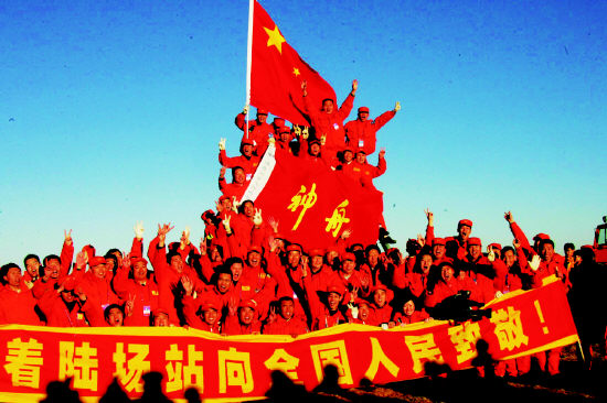今晨4時33分,神舟六號返回艙在內(nèi)蒙古四子王旗中部草原成功著陸,航天員費(fèi)俊