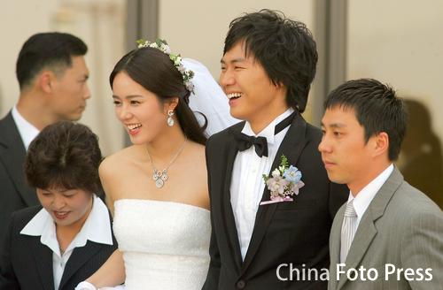 搜狐娛樂訊:2005年10月17日,韓國 明星延正勛與韓佳人結婚照曝光,今年4月26日,二人在首爾華克山莊舉行婚禮,親密熱吻,幸福滿溢。 責任編輯:林彥婷