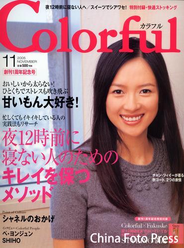 2005年10月21日,日本,在剛剛出版的日本綜合類女性雜志《Colorful》11月號(創刊1周年紀念號),封面刊登了中國女明星章子怡的秋裝照片,并在內頁用兩個整頁,刊登了章子怡身穿秋季大衣的照片。Huaren/文并圖