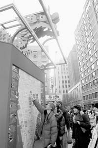 2005年新年,美國人在紐約唐人街的繁華地帶查看購物及餐飲信息。