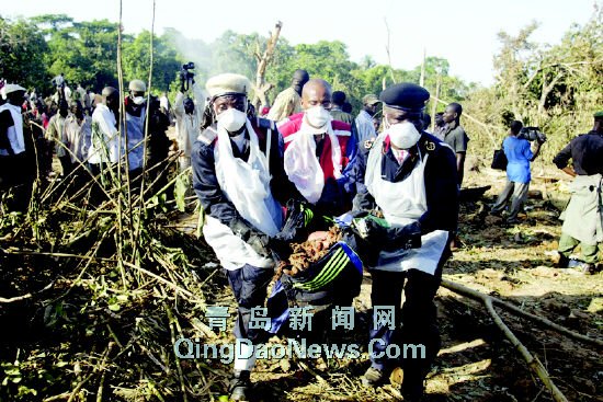 在尼日利亞“非洲獨立電視臺”播出的電視畫面上,可以看到一些村民在圍觀失事客機的殘骸。白色的機身已經斷裂成數截,陷在深達8米的大坑中,殘破的機尾上還能看到貝爾菲尤航空公司的天藍色條紋標志。