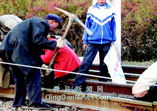 而現場作業的鐵路工人并不去阻止偷竊鐵軌配件的村民。