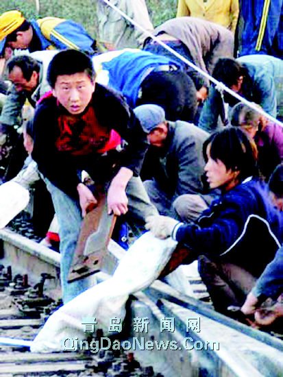 早報訊   據《蘭州晨報》報道,10月23日,位于甘肅永登縣苦水 鎮的新蘭武二線大路車站正式投入使用后,原車站棄用的660余米長的鐵路頓時成了當地沿線百余村民哄搶、偷竊的目標。    記者在現場看到,660余米長的鐵軌暫時還未遭到破壞,但大部分配件已被上百村民拆卸并不斷運走(上圖、右圖)。    而現場作業的鐵路工人并不去阻止偷竊鐵軌配件的村民。