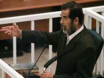 薩達姆在巴格達伊拉克特別法庭接受審判。