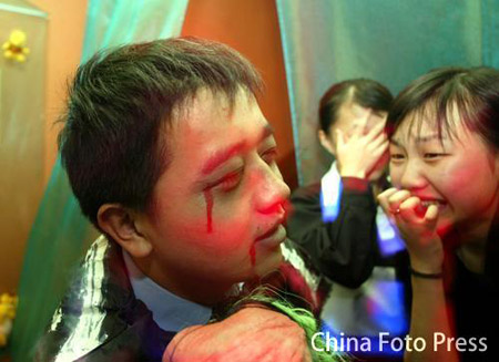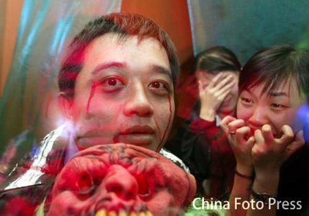 隨著萬圣節(jié)的臨近,該店的宋經(jīng)理告訴記者,他覺得這是一種給現(xiàn)實中工作壓力大的人們一種很好的解壓方式,當天至少有三個女孩子被嚇的眼淚直流,不過并沒有考慮到會給受到驚嚇的市民造成什么后果。