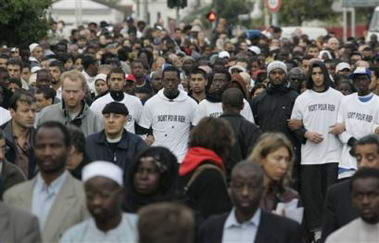 29日,克利希蘇布瓦市數(shù)百名居民在市政廳和事發(fā)變電站之間舉行默哀游行。數(shù)十名青年身穿寫有“無辜死亡”的T恤衫,走在游行隊伍前列。