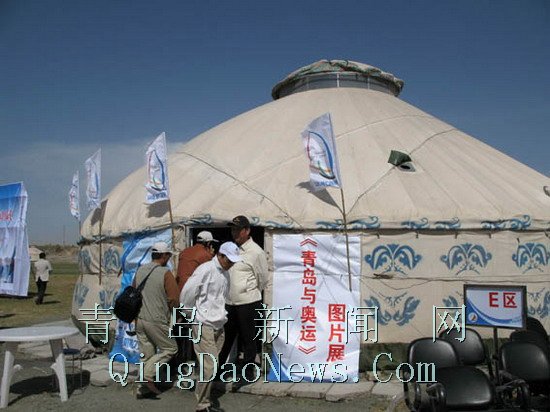 來自青島和烏魯木齊本地的帆船選手,在柴窩堡湖面上進行了帆船表演。柴窩堡湖位于烏魯木齊市區東南約45公里,湖面積約30平方公里,這里具有與“帆船之都”德國基爾相近的風力及氣候條件,常年風速均勻強勁,較適合開展帆船運動。青島帆船首次揚帆新疆,不僅改變了新疆無帆船運動的歷史,而且也給當地帶來大力開展水上帆船運動的啟發。在比賽場地,“與海聯姻”、“相約奧運”,一幅幅颯颯飛揚的彩旗,昭示著人們共同美好的心愿和祝福。