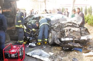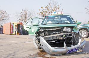 出租車車頭被撞爛 豐田轎車幾乎被撞碎,一傷員被困住。 昨天上午,一輛出租車在即墨藍鰲路大信段掉頭時,被后面一輛豐田轎車撞飛,接著這輛豐田車又被迎面快速行駛的一輛中巴客車撞出十多米,客車發生側翻。豐田轎車上的兩名男子被擠在變形的駕駛室內。即墨消防隊員和交警立即趕到現場,經過近1個小時救援,將豐田車司機和坐在副駕駛室的男子救出。記者隨后從即墨市中醫院獲悉,客車5名乘 現場〉〉〉 頂飛出租又被客車撞 “當時車速太快了,真是太驚人了!”昨天上午11時30分,記者聞訊后立即趕到現場看到,上百名過往市民在觀看救援,幾名消防隊員正在用工具對豐田轎車上的一名被困傷員進行營救。在藍鰲路大信段西側的事故現場,一輛綠色出租車橫向停在馬路左側,車頭被撞爛,中巴客車側翻后躺在馬路右側,豐田轎車車頭被撞幾乎報廢。馬路上到處散落汽車零部件。由于中巴客車和轎車的油箱都被撞破,汽油流淌在地上成了“油河”。為了避免險情再次發生,即墨交警和派出所民警控制現場,不允許市民在現場抽煙。 一名姓李的目擊市民稱,當時他正在路上散步,突然聽到一聲巨響,回頭一看,一輛豐田轎車撞飛一輛出租車后,另一輛對向行駛的中巴客車又將豐田撞飛后,發生側翻。 |