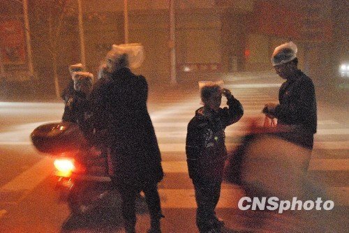 ????甘肅民勤局部能見度為0米 街道護欄被刮倒