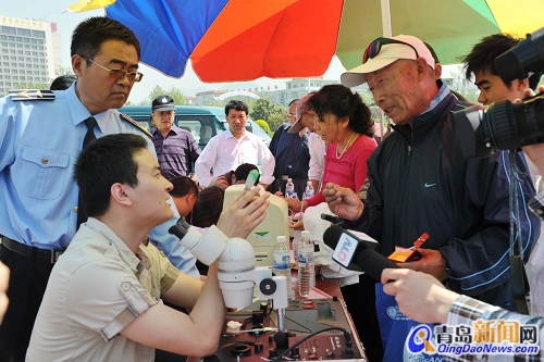 檢測現場變成“鑒寶大會” 青島新聞網5月20日訊 昨天的李村維客廣場,儼然變成了一場“鑒寶大會”。為迎接第11個世界計量日,昨天上午,市質監局在這里開展現場咨詢活動,免費為市民檢測珠寶首飾、眼鏡質量、血壓計等。周邊市民得知可以免費檢測珠寶,紛紛拿出“壓箱底”的家伙,請專家“把把關”。一上午時間,共檢測珠寶飾品80余件,其中“冒牌貨”超過4成。 買珠寶記得索要資質證書