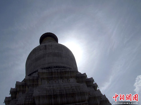 中新網5月23日電 (高峰毅 焦瑾琦) 近日,華北地區氣溫居高不下。5月21日晚9時許,山西五臺山出現了月暈現象,持續了近一個小時。而第二天,即22日上午9時許,五臺山上空又出現了日暈奇觀,,并持續了兩個多小時。這兩種暈的出現時間差不足12小時,著實令人稱奇。