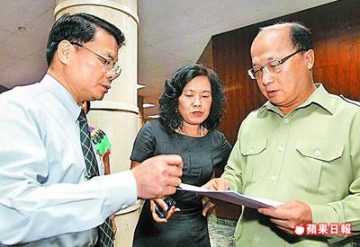 臺中市警局長胡木源(左)昨向市長胡志強說明四警懲處過程。