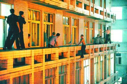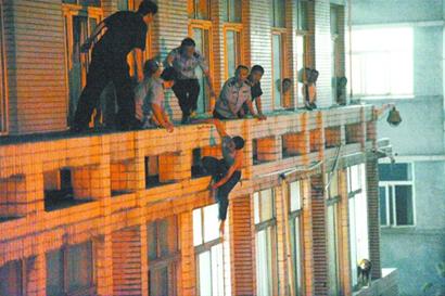 昨晚23時36分,從海慈醫院住院部三樓跳下后,張強(化名)呆呆地躺在消防官兵鋪設的救生氣墊下,久久不敢說話,看著妻子懷中兩歲的兒子樂樂(化名),張強慢慢地點了點頭。由于生病等原因,張強四天未合眼,導致昨晚異常狂躁并跳下三樓,記者在現場親歷了這場3小時26分的驚險一幕,在消防官兵和民警以及圍觀人員的配合下,終于成功地用救生氣墊挽救了這條年輕的生命。 拔掉吊瓶,轉身跳 30歲的張強幾年前從臨沂來到青島開了個小飯店,婚后生了個胖兒子,一家三口過得幸福美滿。在朋友眼里,張強性情溫和敦厚,在鄰居眼里他則對人熱情、生活樂觀。然而,四天前一個偶然事件讓原本幸福的一家陷入了煩躁。上周五,張強突然患上了重感冒,一直發燒并咳嗽不止,隨后在一家小診所打了四天吊瓶。 “自從打吊瓶這幾天,俺兒天天睡不著覺,開始煩躁不安。 ”張強的父親哭著說道,昨天上午張強到撫順路批發市場買菜,卻發生了意想不到的一幕,他突然像變了個人一樣,砸了菜攤,并胡亂罵人。朋友隨即把他送往人民路一家醫院治療。“這種事以前從來沒發生過。 ” 昨晚19時30分,張強突然拔掉手上的輸液管,從床上一躍而起。“感覺他比較煩躁。 ”張強的室友告訴記者。隨后,張強開始在房里一通亂砸。隨后,20時10分左右,張強跳出窗戶,跳上了陽臺。 消防官兵,尋找救援位置 由于擔心張強突然從樓上跳下,負責營救的警方又迅速聯系了消防官兵趕到現場,負責實施營救。昨晚9時,威海路消防中隊接到命令后,趕到現場準備鋪設救生氣墊。但是由于張強在三樓幾十米長的陽臺上不斷來回走動,給救援行動帶來了一定的難度,到底該把救生氣墊鋪設在什么位置困擾著救援人員。最后,經驗豐富的消防官兵和民警,在樓下商定了一個“計策”:一方面,把三樓下方中央的空地作為最佳營救點,開始鋪設救生氣墊。另一方面,由民警爬上陽臺采取行動,準備將張強“逼”到陽臺中間位置,一旦他真跳樓,正下方就恰好是救生氣墊。 昨晚23時許,消防官兵將氣墊完全充滿氣,猶如一個黃色的“大面包”躺在下方。此時,一直在三樓的民警也采取了行動,他們分別從張強身體的左右兩邊爬上陽臺,采取合圍之勢,將張強逼迫到最佳救援地點的上方。 |