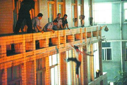 兩歲兒子,“爸爸我想你了” 昨晚,接到報(bào)案后,110民警迅速趕到現(xiàn)場(chǎng),一起加入了營(yíng)救隊(duì)伍。在嘗試了各種常規(guī)救援都無(wú)效后,民警當(dāng)即決定,開(kāi)車(chē)將張強(qiáng)的妻子和兒子接到醫(yī)院,準(zhǔn)備打出 “親情牌”。 昨晚22時(shí)30分,張強(qiáng)妻子在父親老張的陪伴下,帶著年僅兩歲的兒子樂(lè)樂(lè)趕到現(xiàn)場(chǎng)。望著三樓上搖搖欲墜的老公,她頓時(shí)淚如泉涌,將頭埋在兒子的頭發(fā)間哭泣。在民警的幫助下, 剛要進(jìn)屋,猛然轉(zhuǎn)身離去 “爸爸,我想你了,你快回來(lái)吧,不要跳樓。 ”晚上23時(shí)15分,雖然已是深夜,但是兩歲的樂(lè)樂(lè)似乎也明白眼前的事情非常重要,一點(diǎn)困意也沒(méi)有。他再次在媽媽?xiě)阎校俺隽诉@句話,并向不遠(yuǎn)處的爸爸伸出了小手……父子情深,血濃于水,張強(qiáng)聽(tīng)到兒子的央求后,慢慢地回到了窗戶(hù)前,透過(guò)被砸碎的窗戶(hù)看著屋里的兒子和妻子,準(zhǔn)備跨入病房。但正當(dāng)所有人以為事情就此結(jié)束時(shí),張強(qiáng)又突然轉(zhuǎn)身,沿著陽(yáng)臺(tái)跑到了別處,剩下了哇哇大哭的兒子。 看著昔日熟悉而如今判若兩人的老公,張強(qiáng)的妻子抱著孩子緩緩地轉(zhuǎn)身離開(kāi)了病房,眼角里早已噙滿(mǎn)了淚水。而老張則手足無(wú)措,只能縮在墻角默默哭泣,不敢大聲說(shuō)話。 三樓跳下,跌進(jìn)救生氣墊 轉(zhuǎn)眼間,已經(jīng)過(guò)去了近3小時(shí),但救援行動(dòng)仍然沒(méi)有什么起色,而遠(yuǎn)處的張強(qiáng)好像也感受到了身體和心理的壓力,開(kāi)始變得妥協(xié),他不再大聲嚷叫,變得安靜起來(lái)。見(jiàn)時(shí)機(jī)成熟,幾名民警也沿著窗戶(hù)爬到了陽(yáng)臺(tái)上,對(duì)他實(shí)施“左右?jiàn)A擊”。民警步步為營(yíng)占領(lǐng)著空余的陽(yáng)臺(tái),張強(qiáng)則不斷往中間的陽(yáng)臺(tái)收縮,而民警離他也越來(lái)越近。在距離張強(qiáng)約一米時(shí),張強(qiáng)突然縱身一躍,跳到樓下。 一聲聲無(wú)奈的嘆息聲中,張強(qiáng)結(jié)束了這場(chǎng)長(zhǎng)達(dá)3小時(shí)26分的“拉鋸戰(zhàn)”。躺在救生氣墊上,張強(qiáng)望著身邊的兒子和妻子,他趕緊將眼睛閉上,不再說(shuō)話。隨后,張強(qiáng)被送往急診室進(jìn)行治療。 |