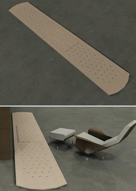 ????雞蛋敲碎以后自然分成蛋黃和蛋白。藝術(shù)家根據(jù)雞蛋的物理特征,制成了雞蛋地毯。兩個用革制成的黃色抱枕可以充當(dāng)雞蛋的蛋黃,而白色的地毯與黃色的抱枕融合在一起給人一種假象。想象一下,躺在地毯上,靠著抱枕看電視是多么舒服愜意的一件事啊!