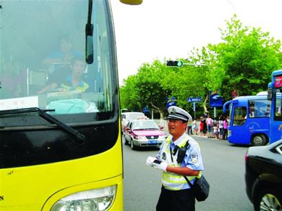 ????粗略統(tǒng)計,昨天涌往前海一線的旅游大巴超過3000輛。昨天上午11時至12時,在運行緩慢的前海一線,市南交警大隊文登路中隊和中山路中隊的民警對違反規(guī)定的車輛進行查處。 1小時內,共查處4輛違法大巴車。