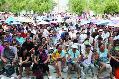 ????昨日上午8時50分許,記者來到位于升平路永寧路小學校園內的拆遷政策發布會現場。得知今天公布拆遷政策,拆遷居民早早等在門口。因場地有限,每戶居民只有房屋產權人才能進入現場,即便是這樣,校園內也已經是水泄不通。而更多居民則站在校園外,遠遠地觀望著發布會現場,聽著從音箱里傳出來的政策。