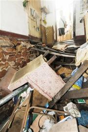 ????“整棟老樓的木地板都快爛了,這次塌的是延先生家,難說下次同樣的事會不會發生在我們家里。”周圍鄰居帶著記者在樓里查看,她指著走廊里已經大面積脫落的墻皮告訴記者,記者隨即走進旁邊的一戶居民家,女主人告訴記者,木地板損壞太過嚴重,她已經重新更換過了,但現在整個地面都向西北角傾斜,記者走過木地板確實感覺腳下地板有點晃動,讓人膽戰心驚。住在1樓的居民看著屋頂告訴記者,2樓的木地板也出現了同樣的問題,要是發生坍塌,住在1樓的居民就危險了。(記者 黃飛 于滈 攝影報道)