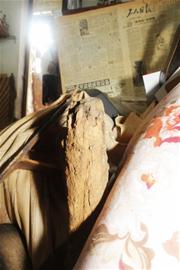 ????記者順著斜坡下到坑底發現,木地板靠幾根木梁支撐,橫梁兩頭固定在墻里,下面撐著幾根豎樁,記者發現很多木樁都已經腐朽,用手指都能摳下一塊來。