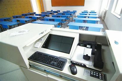 ????與傳統的平面或者弧形黑板不同,學校配備的黑板中央鑲嵌有一個交互式觸摸LED液晶屏,液晶屏全部為55英寸的海信液晶電視,老師講課時可以在液晶屏上加標注、也可以隨意放大、縮小上面的畫面,實現互動教學、人機對話。據介紹,僅這一套液晶顯示屏、黑板、電腦及中控線路的造價就是2.5萬元。