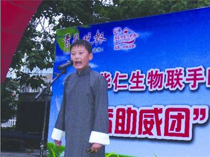 ????12歲的王錫晨是晚報助威團資深團員,曾在市北無棣路社區有不俗的表現。這一次,母親親自陪他從團島大老遠趕到現場,因路途遠,路不熟,來到現場,小錫晨沒有準備的時間了,連口水也顧不上喝,換上演出服裝就登臺了。