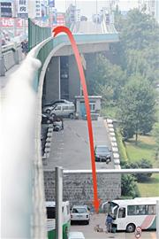 ????“這名中年男子是凌晨三四點鐘從橋上摔下來的,當(dāng)時停車場里有人看車,也聽到有重物落下的聲音,但因為從橋上摔下的男子正好掉落在大巴車和四五米高的墻壁縫隙中,值夜班的看車人根本就看不到。”看車人李師傅告訴記者,值夜班的看車人上午8時已經(jīng)下班回家休息,他來上班時聽周圍居民稱,早晨6時40分左右,大巴車司機(jī)趕到停車場提車,把車開出車位時從后視鏡里看到,一名滿臉鮮血的男子臉朝下趴在地上,頭上淌了一大攤鮮血,司機(jī)急忙停車撥打110報警,并聯(lián)系120急救人員趕來。“看樣子他受傷趴在這已經(jīng)很長時間了,頭上流出來的血都已經(jīng)凝固了,120急救人員趕到現(xiàn)場為他做心電圖時,上面顯示已經(jīng)是一條直線。”目睹此事的另外一輛客車司機(jī)告訴記者。