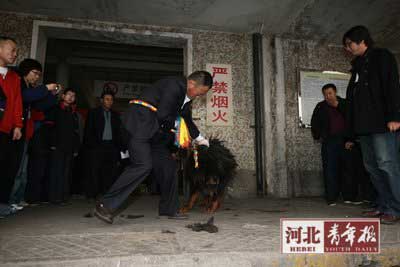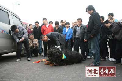 ????“景先生特別喜歡狗,尤其是藏獒。”與買主景先生一起到現場迎接“康巴王”的高先生告訴記者,為了挑選藏獒,他隨景先生共去了4次玉樹,才看中了“康巴王”。高先生說,與“康巴王”這樣的純種藏獒配種成功,每次都能給獒園掙回10萬元。