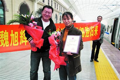 ????昨天上午10時50分,張雯準時回到青島,比張雯早回到青島的魏旭輝也來到火車站。“我是10月30日開始打動員劑的,那個時候魏旭輝就已經捐獻完了。”張雯說,魏旭輝在實施捐獻的時候每天都發(fā)短信把身體遇到的反應情況告訴她,所以到了她捐獻的時候就不緊張了。“我捐獻的時候,身體基本上沒有反應。”魏旭輝說,可能是自己體格較好,并且患者是一名小姑娘,需要的造血干細胞量稍小的原因吧。