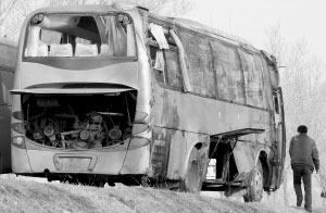 ????無人死亡,10余人住院治療;有人懷疑事發(fā)時大客車可能超載