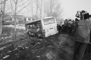 ????事發(fā)之后,司機(jī)被警方帶走協(xié)助調(diào)查,傷者多被送到伊通縣醫(yī)院。在伊通縣醫(yī)院,一位傷者回顧事發(fā)經(jīng)過時說,在感到客車左右晃動后,客車栽入路邊的深溝中。一位受傷較輕的傷者分析說:“可能就是因為路滑,司機(jī)踩剎車踩死了。”目前,在伊通縣醫(yī)院接受治療的幾名傷者情況平穩(wěn),具體傷亡數(shù)字尚無法核實。(記者 郭宸企 助理記者 李博)