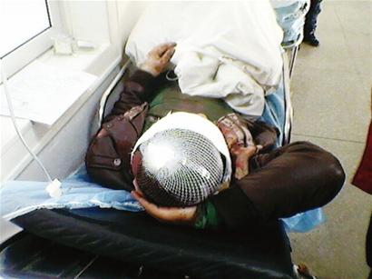 ????“剛才市立醫院急診室送來了一個‘血人’,頭上被人砍了一刀,還在不斷地往外流血,真是太嚇人了。”昨天凌晨,正在市立醫院輸液的王先生目睹這駭人的一幕后撥打早報熱線82888000報料。記者聞訊趕到市立醫院,在外科急診室見到了受傷的小劉,他躺在一張擔架床上,頭部被厚厚的紗布包裹,右耳廓剛剛做了縫合手術,衣物和鞋子都沾滿血,由于疼痛難忍小劉不時發出呻吟聲。