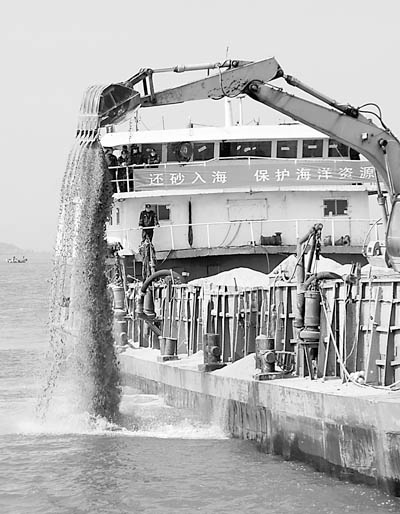 ????2010年10月,青島當地媒體刊出一條“海砂"回家"”的報道。報道稱,黃島開發區政法委聯合公安、海洋與漁業局、邊防大隊等部門聯合執法,將查獲的兩萬余立方海砂返回到被盜海域。